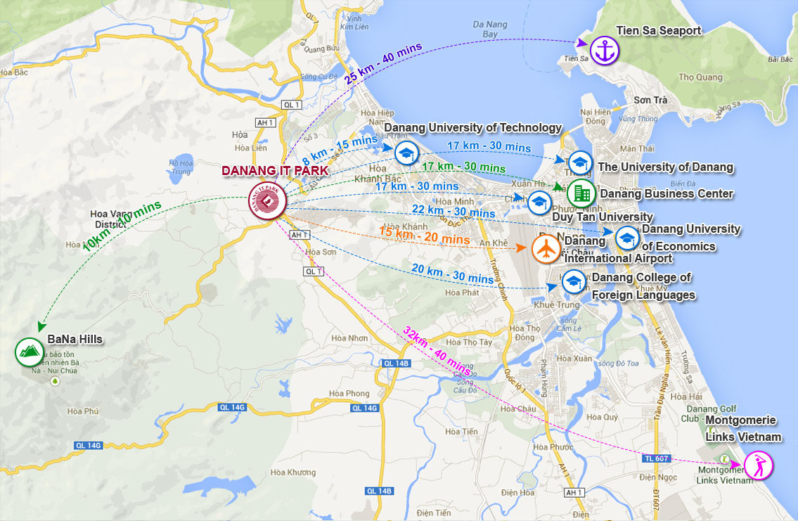 다낭IT 파크에서 각지역까지 거리